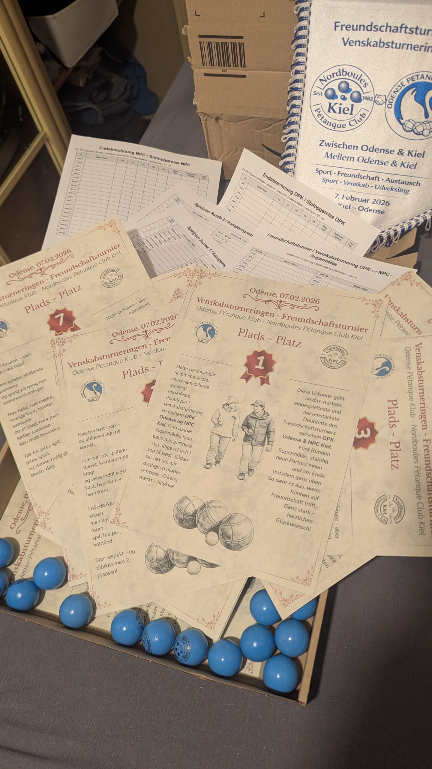 Am 7. Dezember fand im Kieler Schrevenpark das 4.Supermêlée Petanque Turnier des Nordboules Petanque Club Kiel (NPC Kiel) der Saison 2025/26 statt. 26 Teilnehmer*innen in ausgelosten Teams lieferten sich drei Runden lang spannende Spiele mit unterschiedlichen Partner*innen. Gabriele (NPC, Kronshagen) holte sich mit 3 Siegen den Turniersieg, gefolgt von Olaf (NPC) gefolgt von Katja (NPC) und Holger (Kronshagen), die zusammen den 3. Platz belegten.