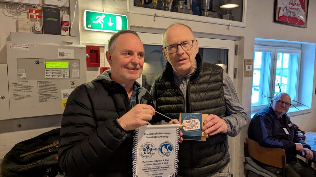 Am 4.Januar fand im Kieler Schrevenpark das 5.Supermêlée Petanque Turnier des Nordboules Petanque Club Kiel (NPC Kiel) der Saison 2025/26 statt. Bei echtem Winterwetter musste der Platz zunächst von Schnee befreit werden, anschließend lieferten sich 19 Teilnehmer*innen in ausgelosten Teams bei Glühwein, Frost und Sonnenschein drei Runden lang spannende Spiele mit unterschiedlichen Partner*innen. Elisabeth (NPC, Kronshagen) holte sich mit 3 Siegen den Turniersieg, gefolgt von Rainer (Kronshagen) und Nils (NPC).