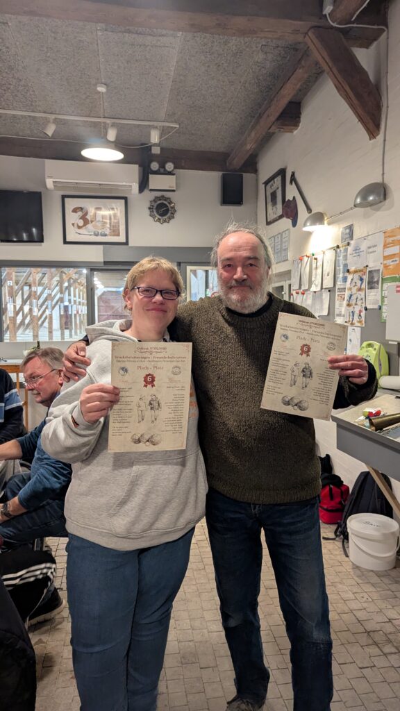 Niko und André Lück (Up’n Swutsch Oldersbek) schafften es nach fünf frei gelosten Runden auf das Siegertreppchen. 30 Teams waren am 23.8. angetreten, aus Kiel waren noch Bianca u. Michi dabei.